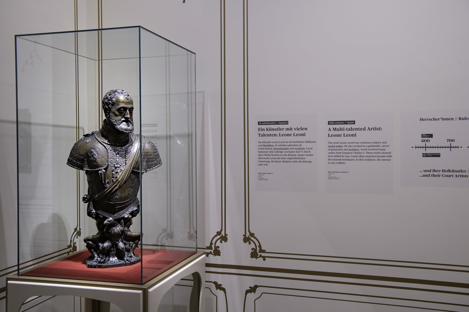 Über Jahrhunderte entstehen auch an den Höfen der Familie Habsburg Medaillen. Die Ausstellung zeigt Bildnisse wichtiger Familienmitglieder von 1500 bis zum Ende der Monarchie 1918. Sie führt an die Höfe in Madrid, Prag, Wien oder Innsbruck. Dort sind viele Medailleure tätig. Eine Anstellung als Hofkünstler bringt viele Vorteile und hohes Ansehen. Daher ist sie sehr begehrt.