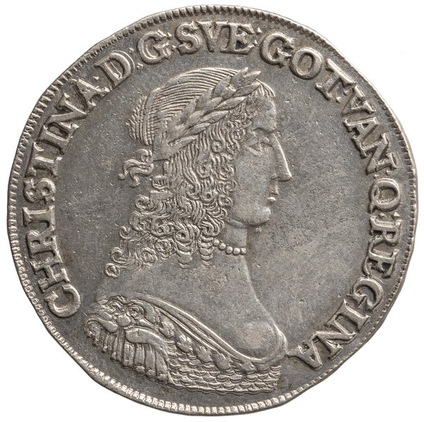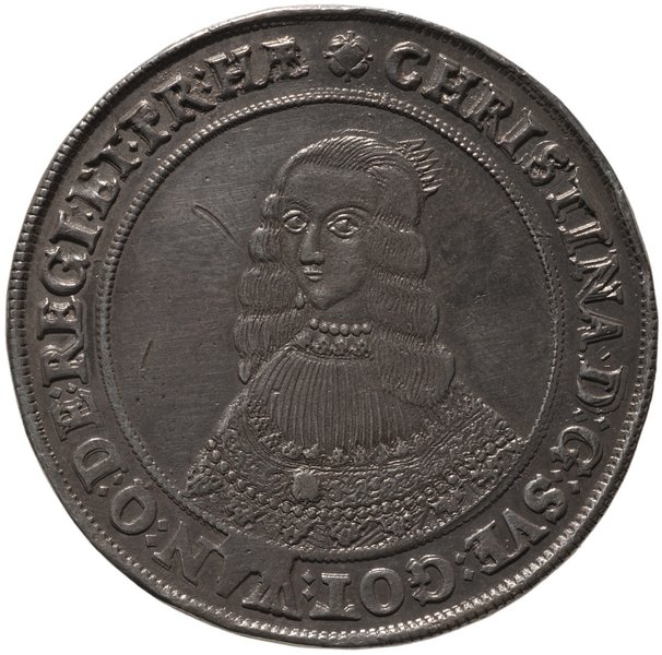 Schon als Kind wird Christina von ihrem Vater, König Gustav II. Adolf, auf die Krone vorbereitet – mit Bildung, Disziplin und einem klaren politischen Ziel. Am 17. Dezember 1644, pünktlich zu ihrem 18. Geburtstag, ist es so weit: Christina übernimmt offiziell die Regierungsgewalt über Schweden. Ein Blick auf die Münze verrät: Diese Königin ist anders. Während die meisten Herrscher*innen im Profil nach rechts blicken, zeigt sich Christina schräg nach links – selbstbewusst, eigenwillig, stilprägend – in einem hochgeschlossenen reich verzierten Kleid.
