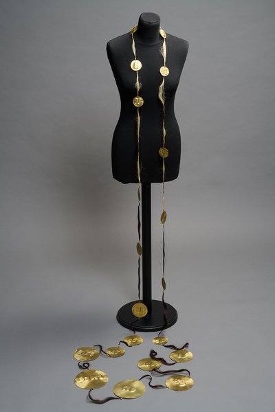 In this work, I reflect on the role of women in patriarchal societies using an antique crown. A veil made of 345 coins with terms such as ‘whore’ or ‘gender pay gap’ refers to the discrimination against women. The crown transforms from a symbol of power into a sign of female strength and oppression, a call for visibility and justice. It can stand for all those whose voices have been silenced.