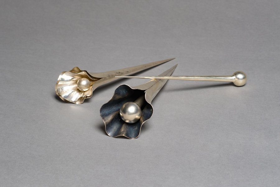 Nickel silver, copper, brass, pearls