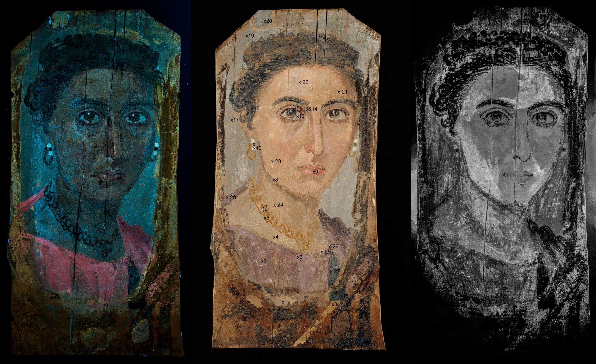 Für die zerstörungsfreie Pigmentbestimmung konnte eine Spezialistin für wissenschaftliche Fotografie, Roberta Iannaccone, gewonnen werden. Im Abgleich mit den bereits durch das Naturwissenschaftliche Labor des Kunsthistorischen Museums durchgeführten Röntgenfluoreszenzanalysen konnten Erdfarben, Auripigment und Krapplack bestätigt werden. Ägyptisch Blau, das älteste künstlich hergestellt Pigment, wurde mit Hilfe von VIL (Visible Induced Infrared Luminescence) eindeutig nachgewiesen. Auch Übermalungen und Herstellungstechniken konnten sichtbar gemacht werden.