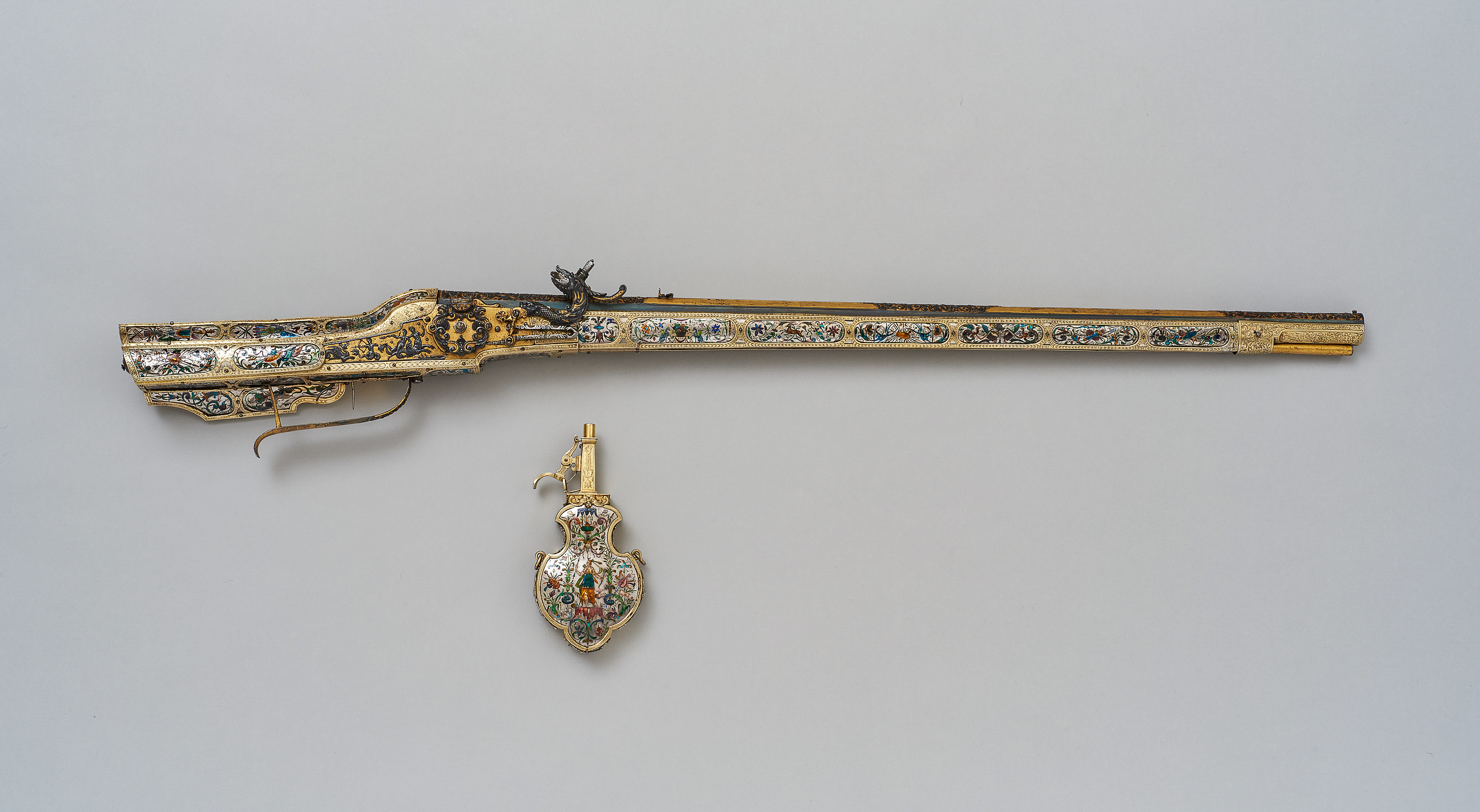 schlossen und der den seit 1591 andauernden sogenannten Langen Türkenkrieg beendete.Zu diesem Gewehr gehört eine im selben Stil verzierte Pulverflasche (Kunsthistorisches Museum Wien, Hofjagd- und Rüstkammer, Inv.-Nr. A 209 a). Sie