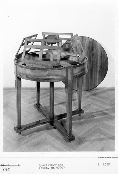 The musically illustrated talk presents an extraordinary piece of chamber-music history: an eighteenth-century quartet table designed for string players. Through a musical performance, close-up views of its craftsmanship, and insights from archival sources, this rare object is placed back into its original setting—revealing how a piece of furniture can shape musical performance and reminding us that the string quartet was originally designed for the home.
