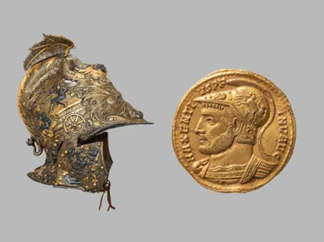 Bei dieser Begegnung jenseits der Ringstraße trifft Metall auf Metall. Die kleinformatigen Münzen aus der Ausstellung im Kunsthistorischen Museum sind in Form von Bildern mit dabei und treten in einen Dialog mit Harnischen, für die textile Mode ebenfalls in Metall übersetzt wurde. Vor allem Helme nahmen die fantastischsten Formen an, die dann wieder in Münzporträts auftauchen konnten, frei nach dem Motto „Wer Köpfchen hat, schützt es“. Doch auch in die andere Richtung sind Wechselwirkungen möglich: Denn in Form von Münzbildern konnten sich neue Modetrends rasch verbreiten und fanden so auch Eingang in die Gestaltung von Rüstungen. In solch stählerner Luxusmode wurden allerdings selten Kopf und Kragen riskiert. Vielmehr zeigten ihre vornehmen Träger sich darin bei besonderen Anlässen. Und oft wurden dieselben Köpfe, die in den reich verzierten Helmen steckten, auch auf Münzen geprägt.